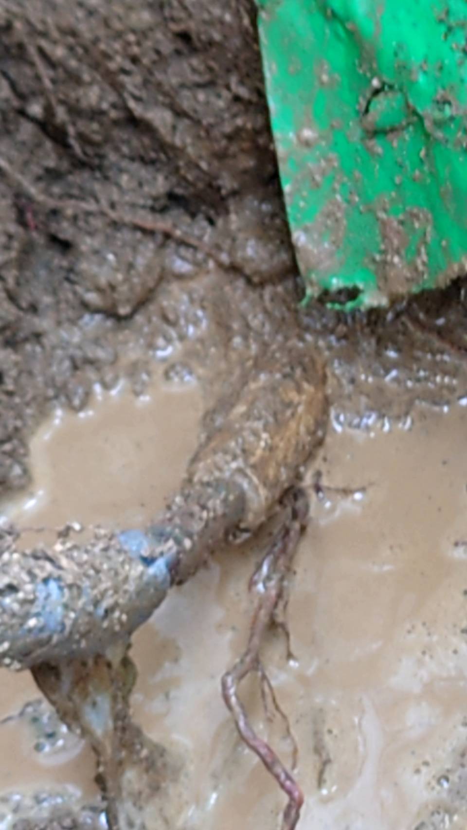 外部地中内で銅管がピンホール(気泡などで銅管が薄くなり穴が空くことです)。